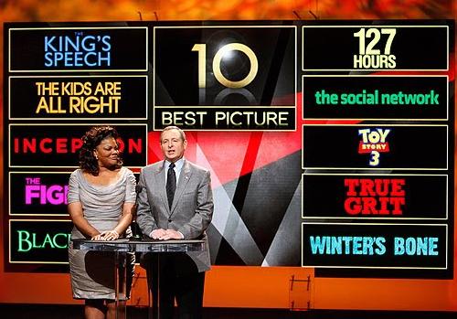 “Toy Story 3”> “Cisne Negro”> “A Origem”> “A Rede Social”> “127 Horas”> “Bravura Indômita”> “O Discurso do Rei”> “Inverno da Alma”> “O Vencedor”> “Minhas Mães e Meu Pai”.