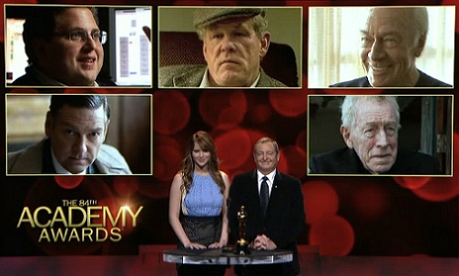 Assim como a categoria de atriz coadjuvante, o elenco masculino desse segmento também já tem o seu favorito incontestável. Christopher Plummer, bem como Octavia Spencer, já levou todos os prêmios da temporada por Toda Forma de Amor, e sua derrota é, sem exageros, impossível de acontecer. A categoria está bem representada – lembrando que ainda não assistimos ao filme Sete Dias Com Marilyn – com três concorrentes que, se vencessem o Oscar, seriam muito merecedores. Plummer, Nick Nolte e Max Von Sydow estão excelentes em seus respectivos filmes. São atores experientes e que, nesse ano, conseguiram resultados dignos da estatueta. Contudo, como já dito, Plummer, o eterno capitão Von Trapp de A Noviça Rebelde, tem tudo para ser o escolhido da Academia.