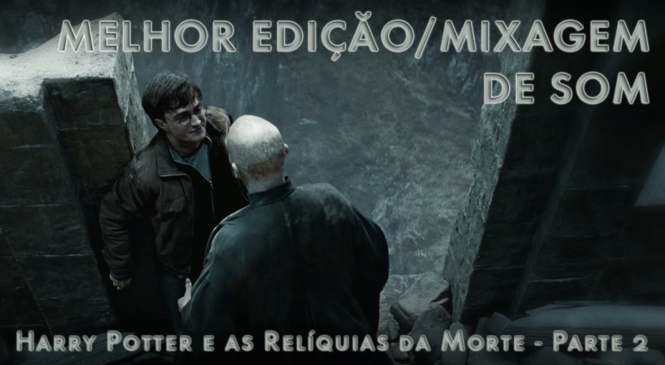 Como o filme mais grandioso de toda a série, era de se esperar que Harry Potter fizesse um belo trabalho não só nos efeitos visuais como também nos sonoros. E quem teve a oportunidade de assistir ao capítulo final da saga em uma boa tela de cinema conseguiu perceber a excelência do resultado. Da visita ao banco de Gringotes até os confrontos na escola de Hogwarts, Harry Potter e as Relíquias da Morte – Parte 2 não foi certeiro ao ambientar o espectador em cada cena com o uso da edição e mixagem de som. Nós realmente estamos dentro daquele mundo fantástico, compartilhando das sensações de cada um dos personagens. Um trabalho sonoro exemplar e que só contribuiu para o maravilhoso resultado do longa que fechou em grande estilo a história de Harry Potter (Daniel Radcliffe).