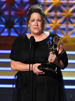 Ann Dowd com o seu primeiro Emmy: o prêmio não veio como convidada por The Leftovers, mas sim como coadjuvante por The Handmaid’s Tale.