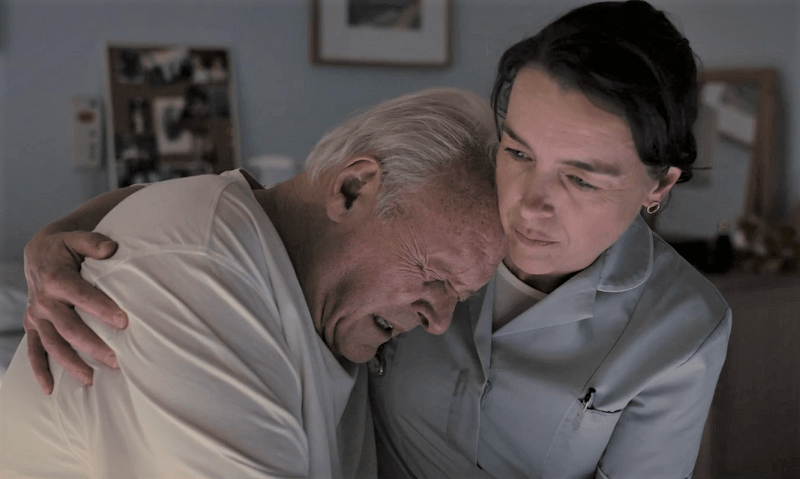 Com um belo e bem-vindo poder de síntese, Meu Pai descortina tudo o que está acontecendo com seu protagonista logo nos primeiros minutos. Aos oitenta e tantos anos, Anthony (Anthony Hopkins) tem esquecido o relógio, brigado com empregadas e dado sinais evidentes de que seu senso de memória e orientação não é mais o mesmo, para completa angústia de sua filha Anne (Olivia Colman), que está de mudança para Paris e precisa decidir o que fazer com o pai. No entanto, não temos certeza nem mesmo sobre as linhas gerais dessa introdução. Será que Anne está realmente indo para Paris? E a atriz que a interpreta é mesmo Olivia Colman? O retrato de um protagonista com Mal de Alzheimer (ou demência, já que o filme não chega a cravar uma definição exata) é extremamente fiel ao se passa na vida real considerando o comportamento de uma pessoa que vive sob essas condições: há a fixação com algum objeto específico (no caso de Anthony, um relógio que ele alega ser roubado a todo momento), as oscilações repentinas de humor, vislumbres inesperados de lucidez em meio a tantos esquecimentos, relatos de histórias que nunca aconteceram ou então são imprecisas em termos de tempo e espaço, a total negação do doente sobre sua condição e, claro, a própria falta de perspectiva acerca de quem o próprio doente é (menino, adulto, idoso, bailarino de sapateado ou engenheiro?). Chega a ser angustiante de tão realista.