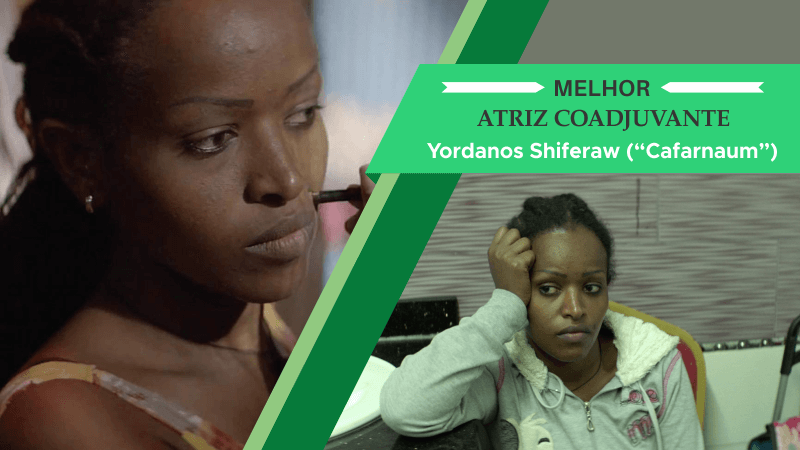 Após ter saído da Eritreia para morar ilegalmente no Líbano, onde sequer tinha uma carteira de identidade, Yordanos Shiferaw pôde contar parte de sua própria história de vida no poderoso Cafarnaum. Como Zahil, uma imigrante ilegal que enfrenta o que for necessário para poder cuidar de seu bebê, Shiferaw (re)viveu emoções e experiências de sua própria trajetória, traduzindo para o espectador o fulminante desespero de uma existência sem perspectiva e sem o mínimo amparo de qualquer pessoa, poder ou instituição. Através da invisibilidade de Zahil, ela, que não tinha nenhuma experiência prévia em atuação, colocou a realidade e a solidariedade de muitas mulheres como ela sob os holofotes, especialmente ao cruzar o caminho de Zain, o protagonista de Cafarnaum. Quando os dois estão juntos em cena, o filme se ilumina de certa maneira, como se Zahil fosse, mesmo tão devastada, um raio de esperança para uma realidade talvez mais desoladora do que a dela. A linha aqui tão tênue entre a ficção e a realidade é matéria-prima para que Shiferaw impulsione os toques de urgência e comoção que definem todo Cafarnaum. Ainda disputavam a categoria: Cho Yeo-jeong (Parasita), Fernanda Montenegro (A Vida Invisível), Penélope Cruz (Dor e Glória) e Regina King (Se a Rua Beale Falasse).